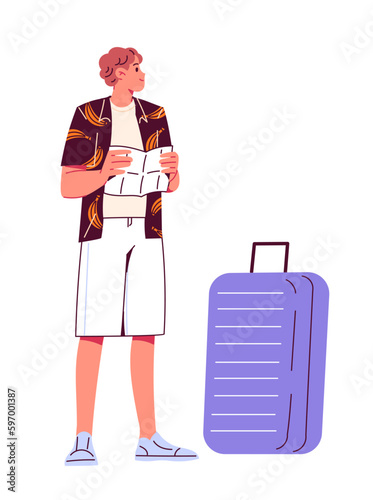 Пожилая пара, путешествующая за границу вместе, векторный значок, изолированный на белом фоне