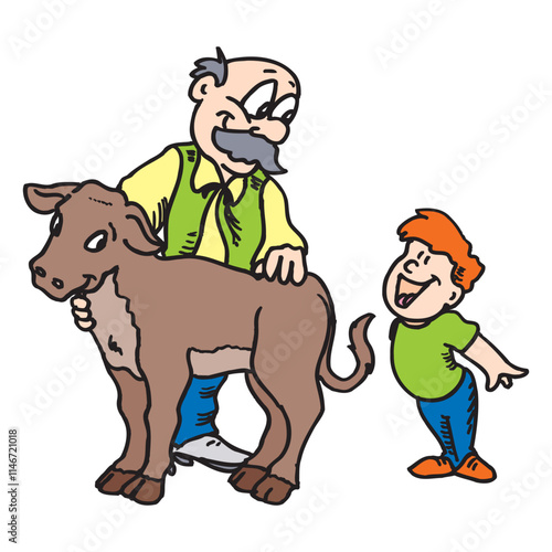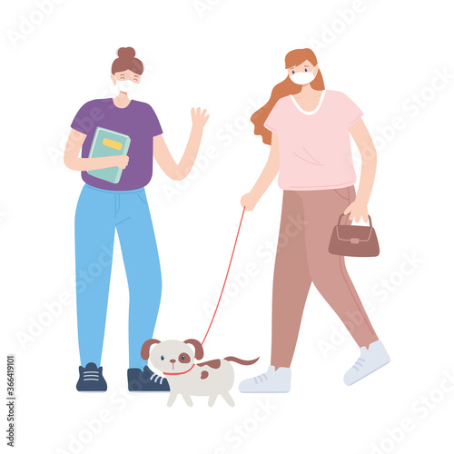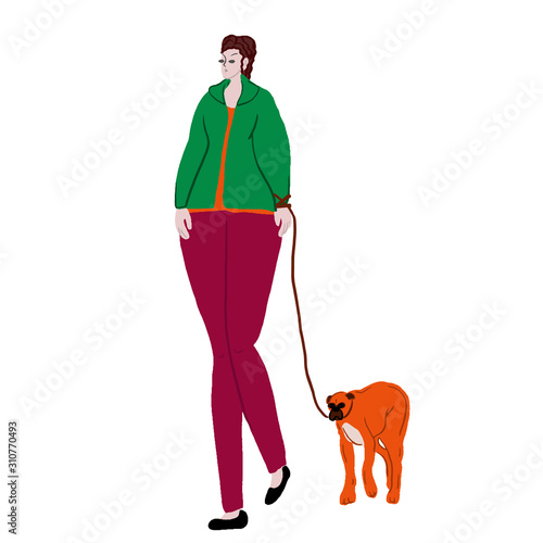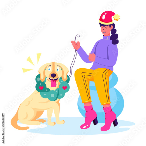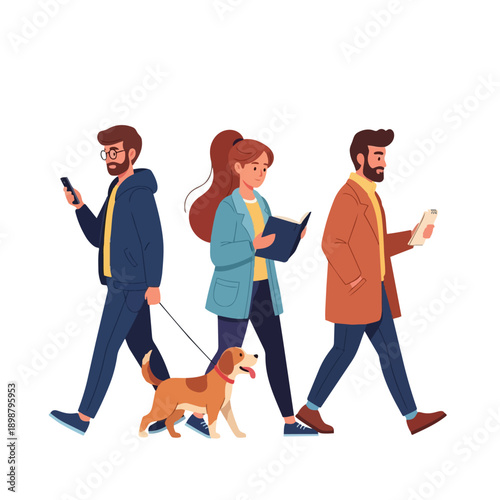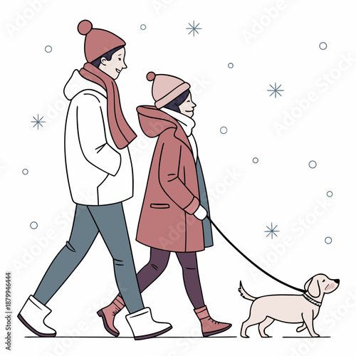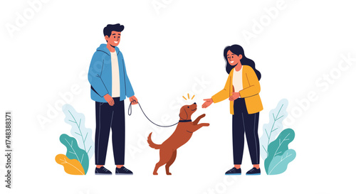 Пожилая пара, гуляющая с собакой, векторный значок, изолированный на белом фоне