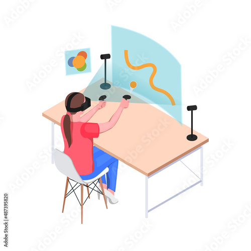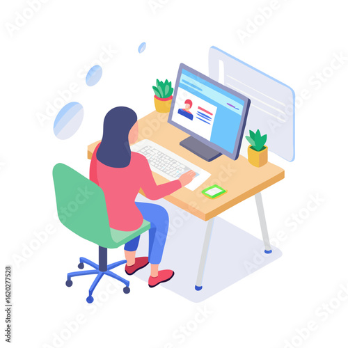 Пожилая женщина, использующая компьютерную векторную иконку, изолированную на белом фоне