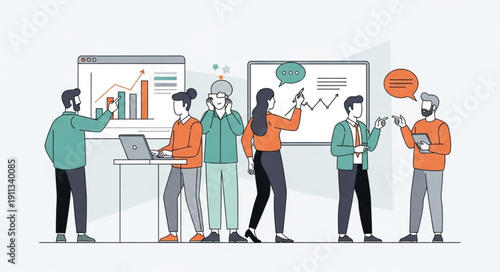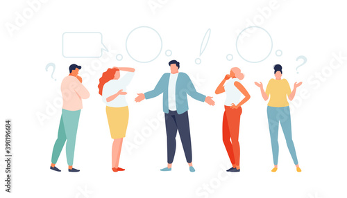 Векторная плоская иллюстрация концепции избирательной кампании. Группа протестующих людей, держащих в поднятых руках пустые плакаты. Предвыборная агитация, пикет, митинг.