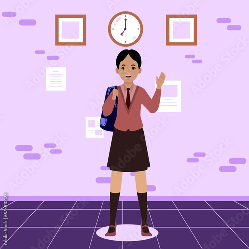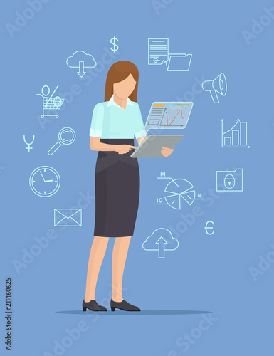 Векторная иллюстрация в плоском стиле концепции избирательной кампании. Женщина, ответственная за выборы, рассказывает о процедуре заполнения избирательных бюллетеней, чтобы оказать помощь избирателям.