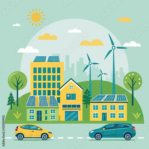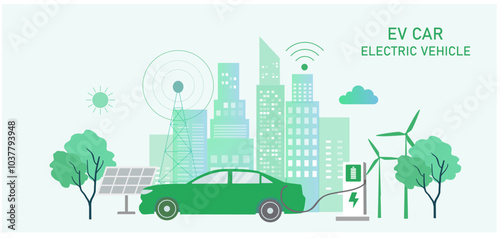 Вектор зарядной станции для электромобилей. Зеленая энергетика и гибридные технологии, экологичное топливо и концепция сохранения окружающей среды. Городская сцена, электромобиль ev и электрическая батарея, 3d иллюстрация, вырезанная из бумаги