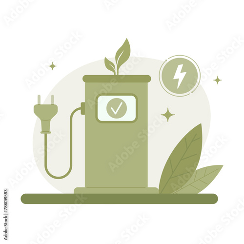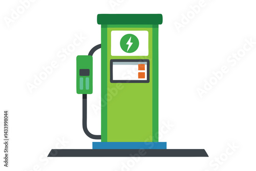 Станция электрического зарядного устройства над городским пейзажем, вырезанная из 3d-бумаги векторная иллюстрация. Государственная служба взимания платы. Электрический терминал для заправки гибридного автомобиля. Зеленая экоэнергетика и охрана окружающей среды