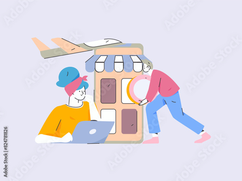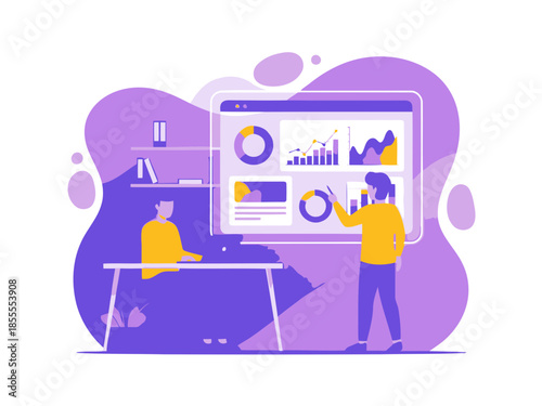 Электрическая панель или распределительный щит и электрики с отверткой, вольтметр, векторная иллюстрация. Композиция услуг по ремонту и техническому обслуживанию электричества для веб-баннера, страницы веб-сайта и т.д.