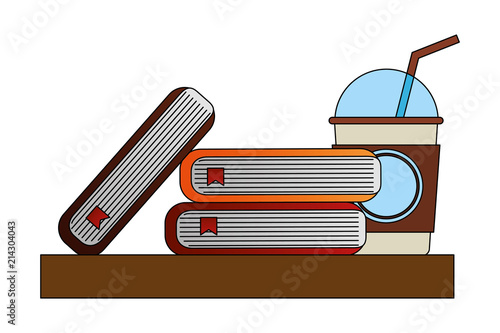 Векторная иллюстрация концепции электронной книги в плоском стиле. Стопка книг и устройство для чтения электронных книг.