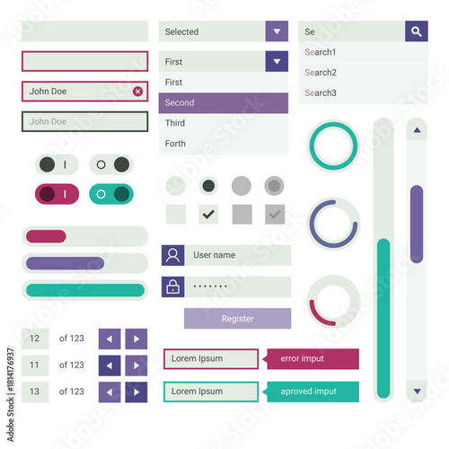 Электронный калькулятор, знак процента и круговая диаграмма, векторная изолированная иллюстрация. Символы финансов, займа, статистики.