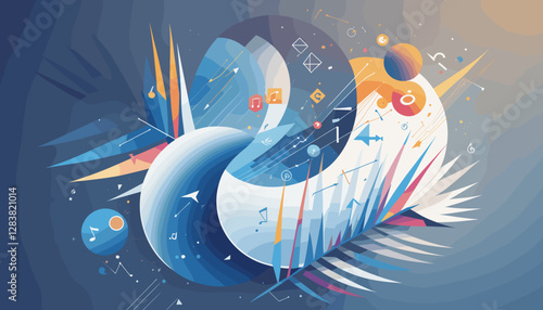 Рекламный плакат электронной музыки. Виниловый компакт-диск, музыкальная нота, художественная иллюстрация ручной работы ди-джея, вырезанная из бумаги. Развлекательный фестиваль дискотек, продвижение концертов pop0-music party