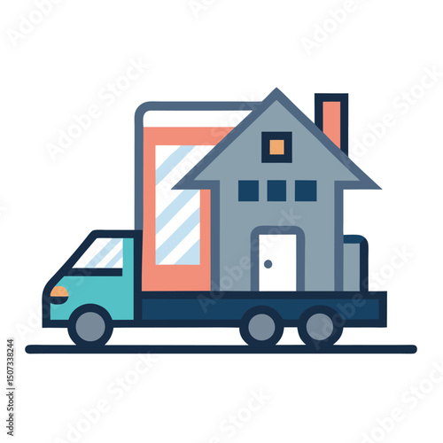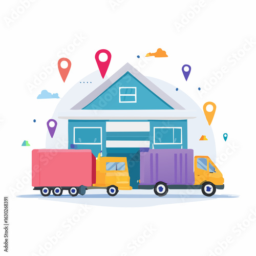 Люди разгружают грузовик с бытовой техникой, холодильником и стиральной машиной, векторная плоская иллюстрация. Служба доставки электроники, концепция транспортировки грузов для веб-баннера, страницы веб-сайта и т.д.