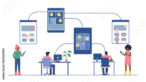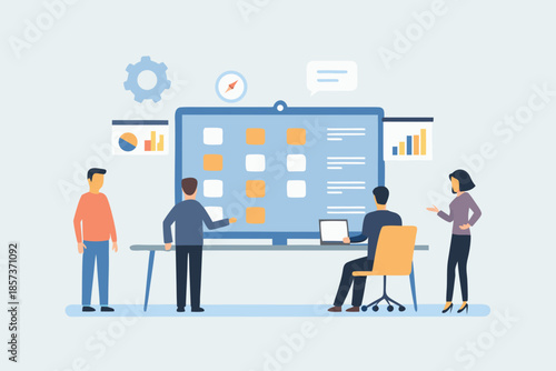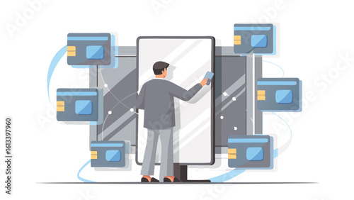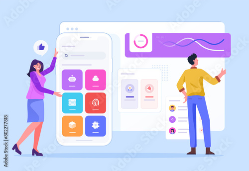 Магазин бытовой и кухонной техники, векторная плоская иллюстрация. Специальные предложения и кибер-распродажи бытовой техники, сезонные и праздничные распродажи и скидки в концепции магазина электроники.