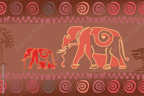 Силуэт слона с африканской природой, семейство жирафов, носорог, зебра внутри, животные сафари-парка, векторная иллюстрация в стиле бумажного искусства. Спасайте животных, защищайте дикую природу. Путешествовать. Многократное воздействие.