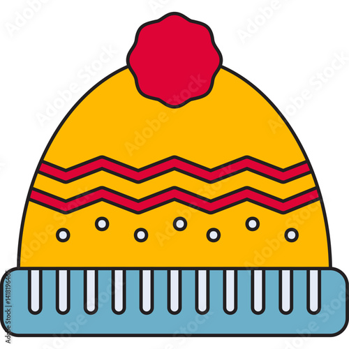 Шляпа эльфа для празднования Рождества и Нового года векторная иконка, изолированная на белом фоне.