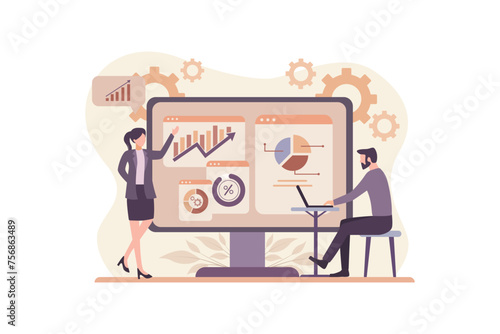 Тактика маркетинга по электронной почте, векторная иллюстрация. Рассылка новостей, концепция капельного маркетинга с персонажами, анализирующими статистику электронного маркетинга для веб-баннера, страницы веб-сайта и т.д.