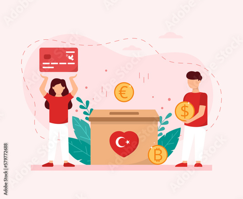 Чрезвычайный фонд, векторная плоская иллюстрация. Пара откладывает деньги, чтобы покрыть неожиданные и незапланированные расходы в будущем, такие как неотложная медицинская помощь, ремонт автомобиля и дома, образование.