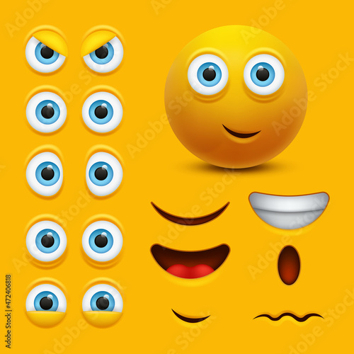 Создатель эмодзи, создатель смайликов. Коллекция векторного дизайна частей тела и аксессуаров для смайликов позволяет вам создавать свои собственные классные женские смайлики.
