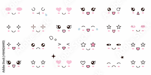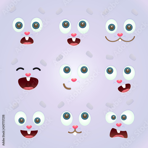 Смайлики для конструктора смайликов, векторная иллюстрация. Улыбка создателя женского персонажа.