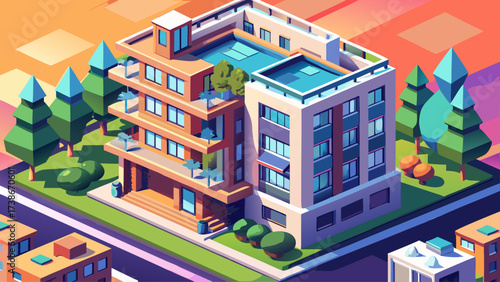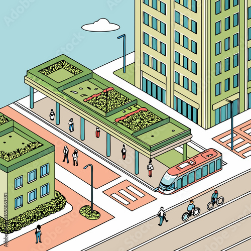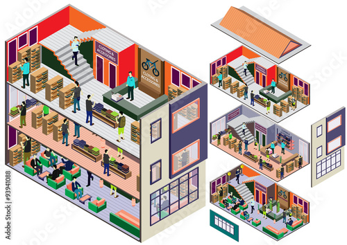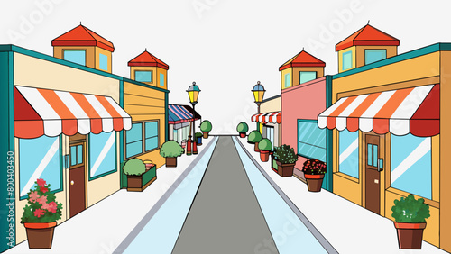 Пустая улица в центре города, векторная иллюстрация. Красивая пешеходная торговая улица с закрытыми магазинами, бутиками, ресторанами, кафе. Карантин, меры социального дистанцирования в связи со вспышкой коронавируса.