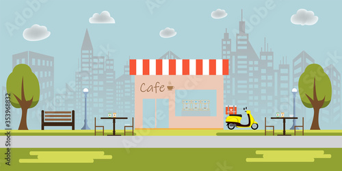 Пустая музыкальная сцена с музыкальным инструментом, подготовленная в парке для рок-панк-вечеринки под открытым небом и выступления группы векторная иллюстрация