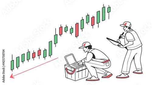 Инженеры мультяшных персонажей создают робота в лаборатории технической робототехники, плоская векторная иллюстрация. Технология искусственного интеллекта, изобретение роботов. Наука о робототехнике.