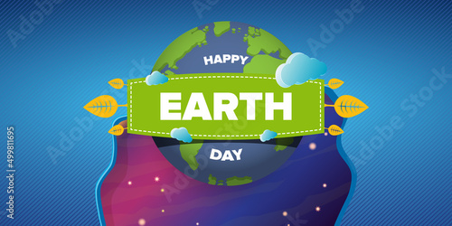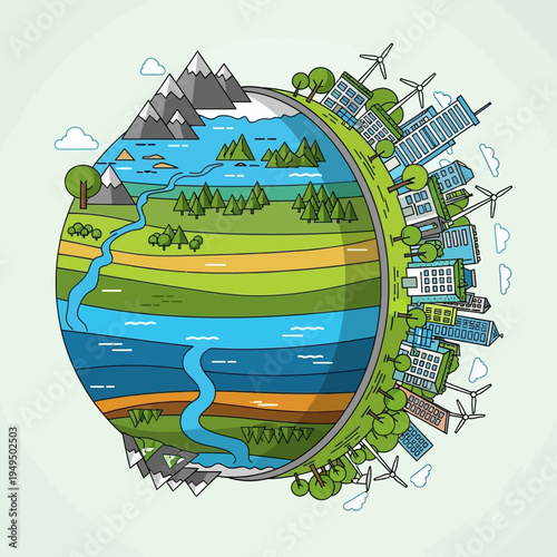 Загрязнение окружающей среды, векторная иллюстрация в современном стиле многослойного бумажного искусства. Отравленная почва со свалки пластикового мусора под современными городскими зданиями. Концепция спасения Земли.