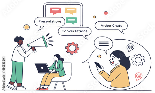 Векторный шаблон веб-сайта по охране окружающей среды, дизайн веб-страницы и целевой страницы для разработки веб-сайтов и мобильных сайтов. Концепция охраны природы с людьми, поливающими растение, проводящими презентацию.
