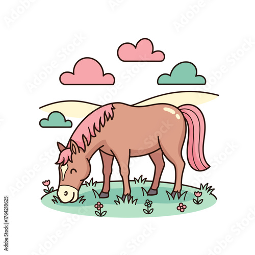 Векторная иллюстрация красивой пятнистой скаковой лошади и молодого человека-жокея. Векторная иллюстрация концепции конного спорта в плоском стиле.