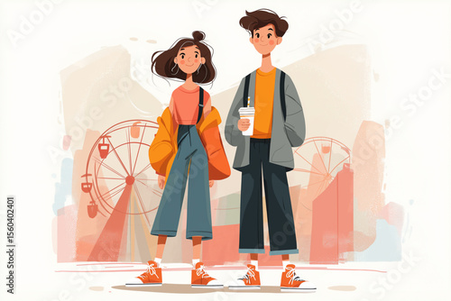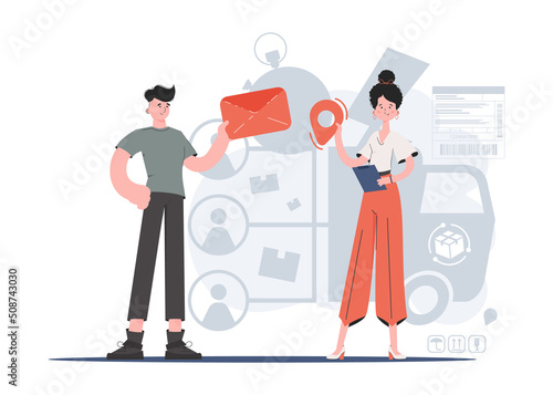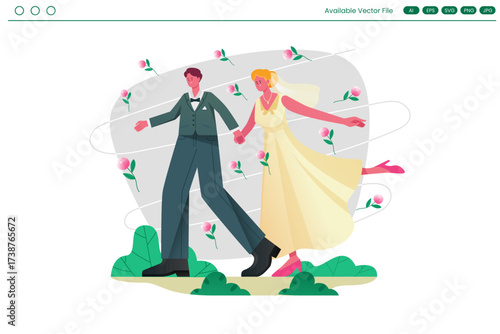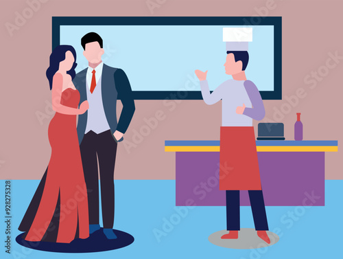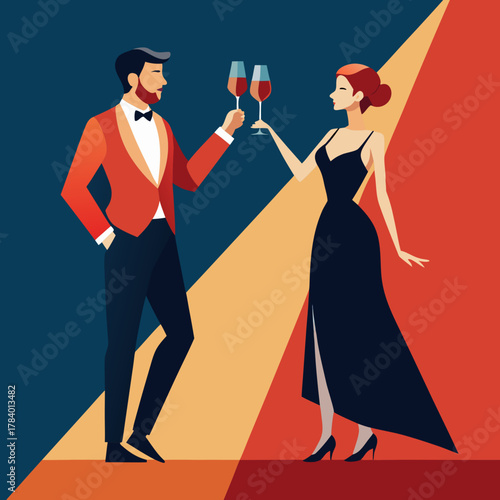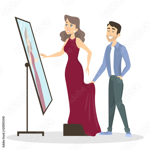Вектор хостов событий. Иллюстрация ведущего церемонии вручения кинопремии. Мужчина и женщина в костюме и праздничном платье стоят изолированно на белом фоне