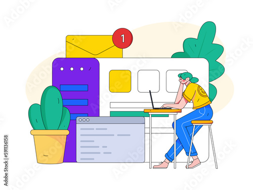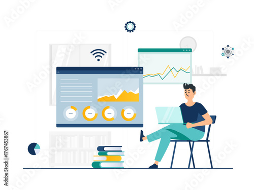 Векторная иллюстрация дизайна в плоском стиле молодых людей, проходящих тест. Онлайн-тестирование, анкета, дистанционное обучение, опрос, концепция интернет-экзамена для веб-баннера, страницы веб-сайта и т.д.