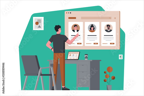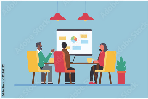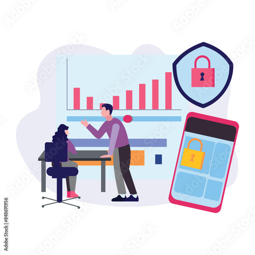 Выставочный стенд торговой выставки, плоская векторная изометрическая иллюстрация. Торговая ярмарка, сцена рекламного мероприятия с промоутером по продажам и клиентами. Выставочный стенд. Демонстрационный стенд для демонстрации прилавка.