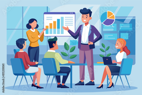 Выставка, сцена торговой ярмарки с персонажами промоутера и покупателя, плоская векторная изометрическая иллюстрация. Выставочный стенд, стенд для проведения торговой выставки, рекламное оборудование.