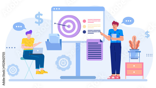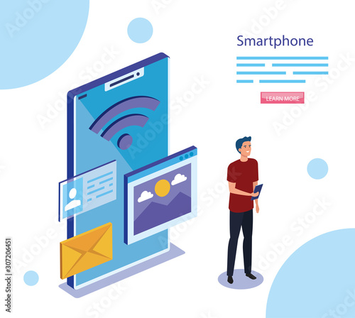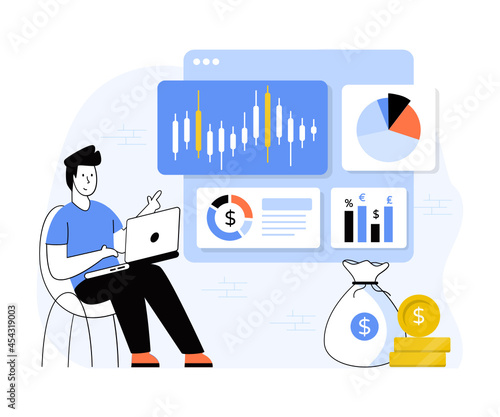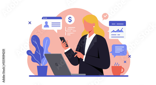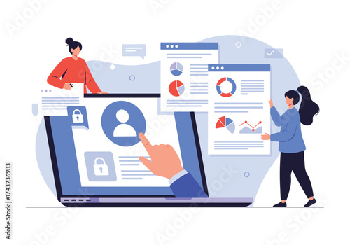 Вектор системы распознавания лиц. Технология биометрической аутентификации по лицу. Персонаж человека сканирует голову, пытаясь получить доступ