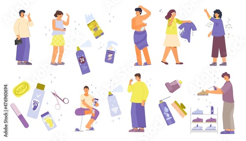 Набор инструментов для удаления волос, плоская векторная иллюстрация. Средства для удаления волос на лице и ногах, устройства. Электрический эпилятор, электробритва, бритва, восковые полоски для депиляции, воск, крем, пинцет для нитей для бровей. Бритье депиляция