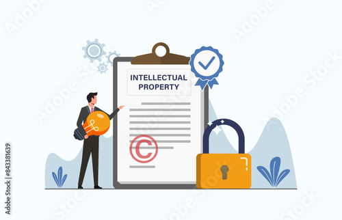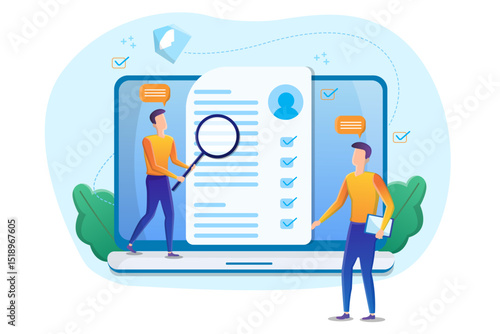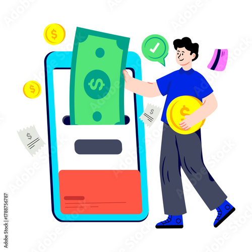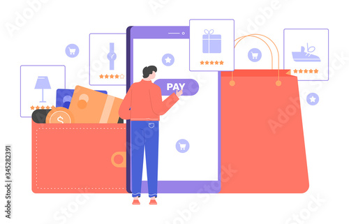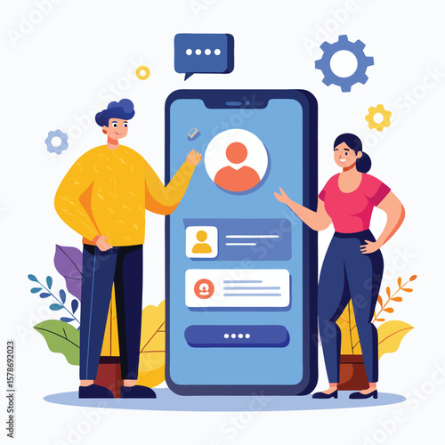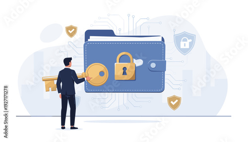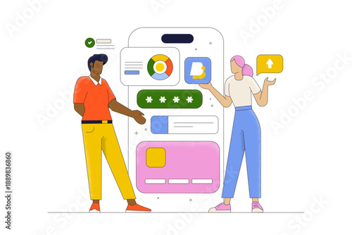 Мобильная технология идентификации по лицу для векторного доступа к персональным данным. Иллюстрация мужчины, использующего биометрический сканер для разблокировки смартфона