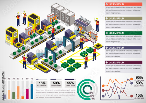 Набор векторных плоских изометрических горизонтальных баннеров для автоматизации фабрики. Фабрика электроники, сборка автомобилей, Медицинская фабрика концептуальные элементы дизайна для веб-сайтов и печатных материалов.