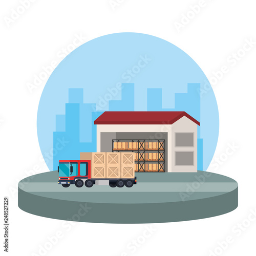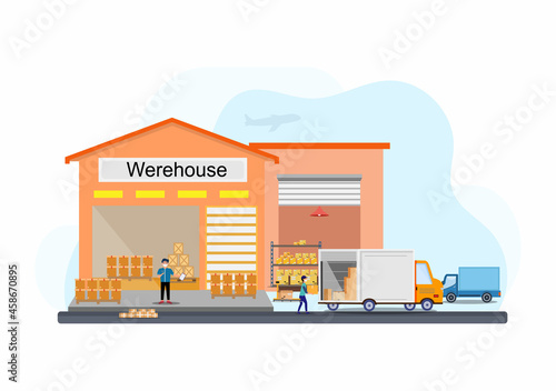 Конвейерная автоматическая линия по производству картонных коробок. Векторная иллюстрация человека, держащего картонную коробку. Концепция фабрики бумажной упаковки для веб-баннера, страницы веб-сайта, презентации и т.д.