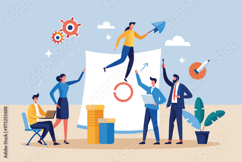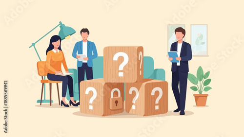 График со стрелкой вниз, бизнесмен-банкрот, потрясенные сотрудники, плоская векторная иллюстрация. Крах бизнеса, крах карьеры, финансовые проблемы, банкротство, экономический кризис.