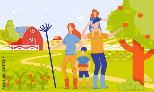 Семейное барбекю, плоская векторная иллюстрация. Счастливая мама, папа с двумя детьми готовят, едят сосиски на гриле и веселятся на природе. Семейная вечеринка с барбекю на открытом воздухе, пикник, летний досуг