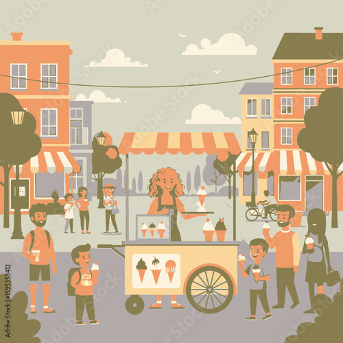 Векторный набор плакатов с семейными персонажами, занятыми домашними делами в доме и отдыхающими на улице. Семейные люди гуляют по улице, готовят еду, играют в футбол. Дизайн в плоском стиле.