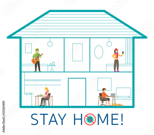 Пандемия коронавируса. Семейные персонажи, сидящие на диване в медицинских масках векторная плоская иллюстрация. Оставайтесь дома, самоизоляция или карантин, чтобы предотвратить распространение инфекционного заболевания, вызванного коронавирусом COVID-19.