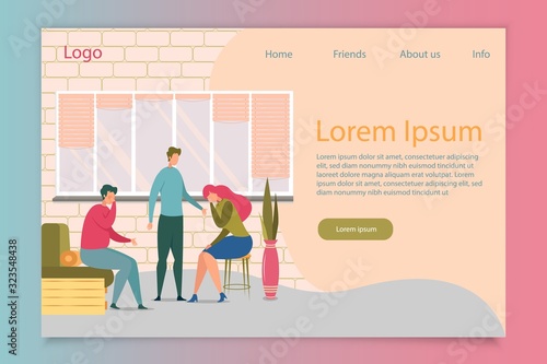 Семейная пара вместе занимается утренней гигиеной в ванной. Мужчина бреется, девушка трет кожу. Иллюстрация концепции. Векторный шаблон дизайна веб-сайта. Целевая страница сайта.