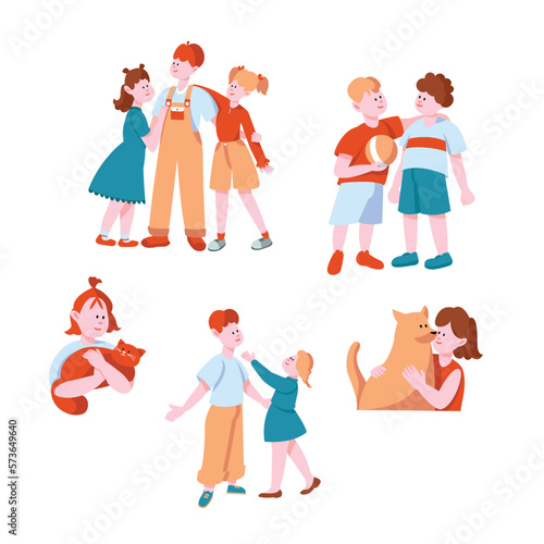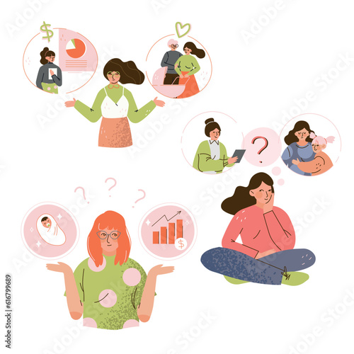 Набор сцен семейного празднования Пасхи, плоская векторная изолированная иллюстрация. Счастливые бабушки и дедушки, мамы, дети с украшенными пасхальными яйцами, тортом, корзинкой, курицей.