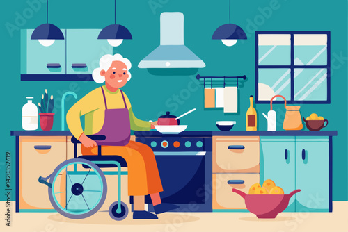 Семья переезжает в новый дом, плоская векторная иллюстрация. Интерьер кухни. Персонажи мужского и женского пола упаковывают кухонную утварь в картонные коробки. Переезд в другой дом и переезд.