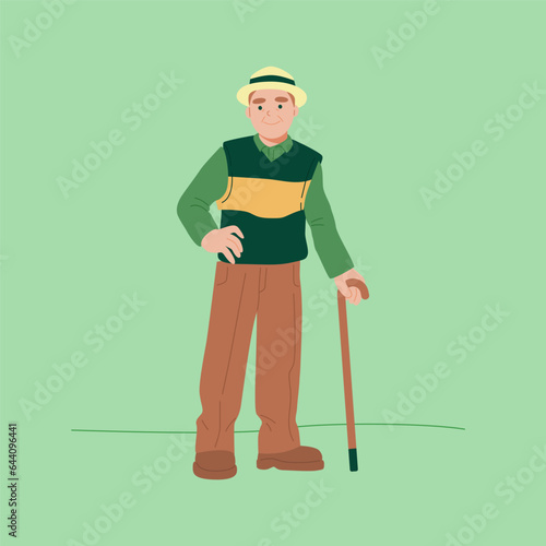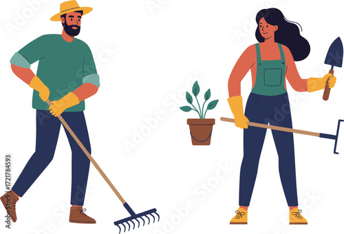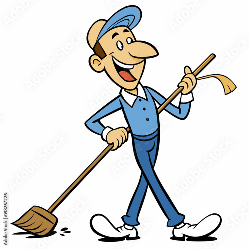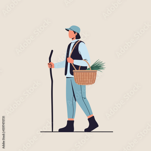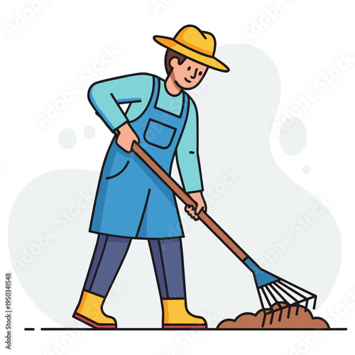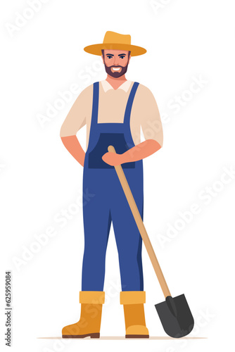 Фермер с вилами и ведром. Векторная иллюстрация в плоском стиле.