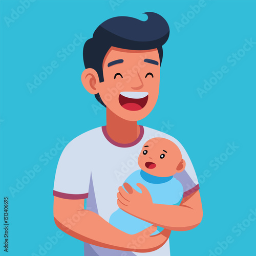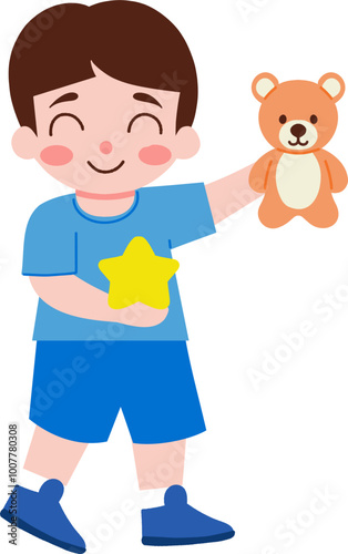 Модный парень, держащий векторный значок кубка с трофеем, изолированный на белом фоне