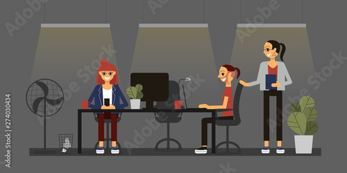 Раздевалка для подиума фотомодели и сцены фотосессии, плоская векторная иллюстрация. Индустрия моды.