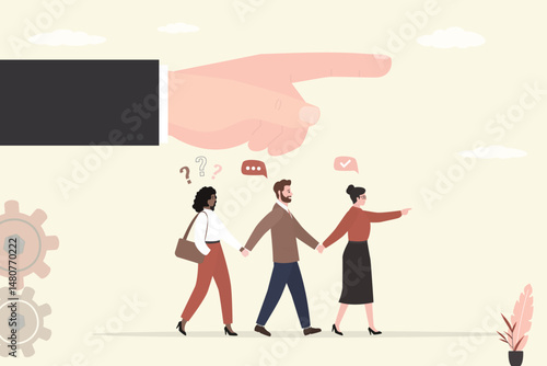 Профессиональный модельер мужской персонаж с девушкой-моделью, идущей по подиуму, векторная иллюстрация. Концепция показа мод для веб-баннера, страницы веб-сайта и т.д.