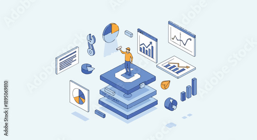 Люди ищут фотографии в Интернете, помещают их в альбом, плоская векторная изометрическая иллюстрация. Быстрый поиск изображений. Онлайн-галерея изображений или смарт-фотоальбом.