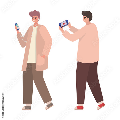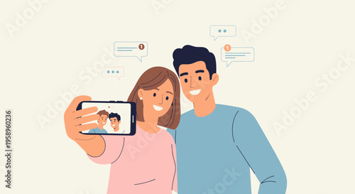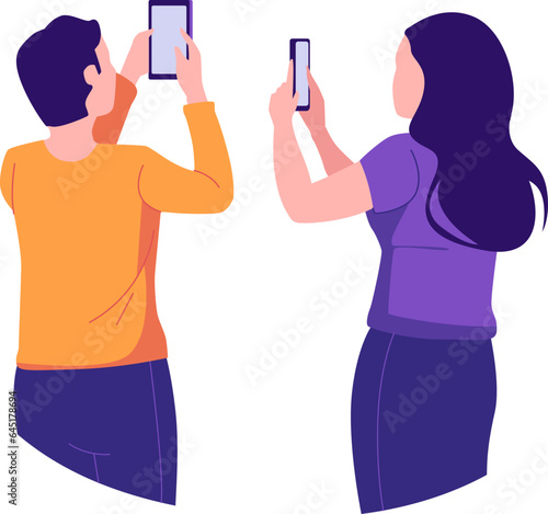 Отец и дочь делают селфи на мобильную камеру векторным значком, изолированным на белом фоне