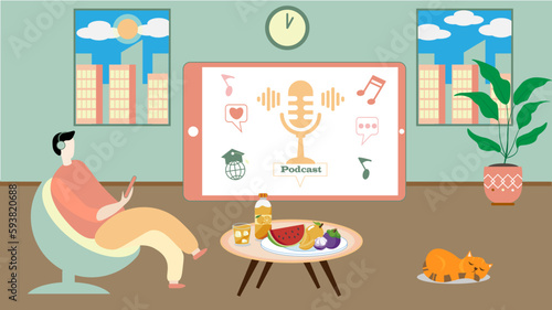 Отец и сын вместе занимаются утренней гигиеной в ванной. Мужчина чистит зубы, мальчик купается в ванне. Иллюстрация концепции. Векторный шаблон дизайна веб-сайта. Целевая страница сайта.