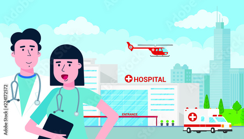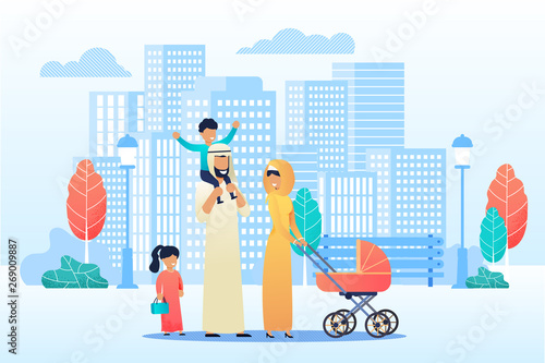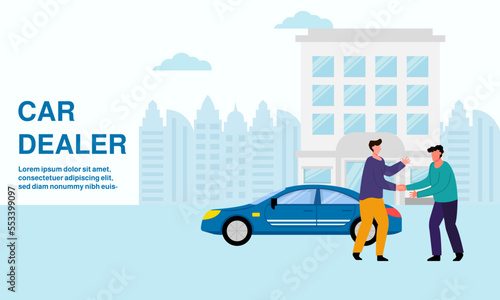 Отец чинит сломанную машину, а его сын держит в руках ящик с инструментами, плоская векторная иллюстрация. Счастливые папа и ребенок проводят время вместе. Отношения между родителями и детьми, счастливое отцовство и воспитание детей.