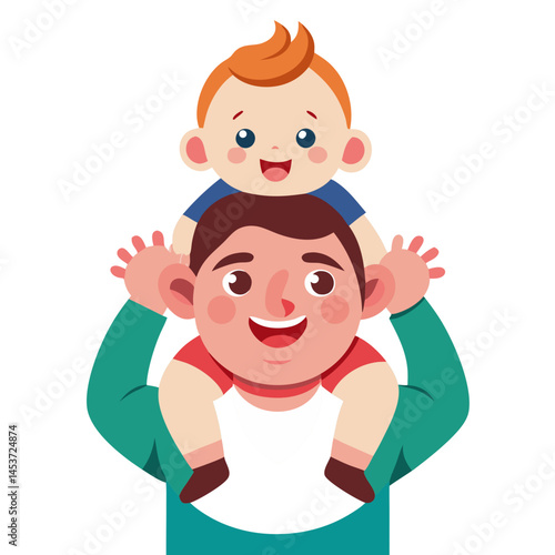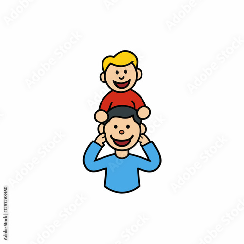 Отец держит дочь на плечах векторная иконка, изолированная на белом фоне